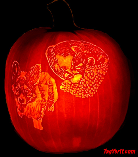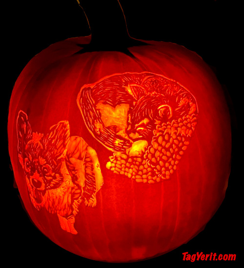 The pumpkins you find on these pages were either done by Rich & Flo Newman (aka TagYerit) or sent in by friends & contributors. We've been carving for many years, so give yourself plenty of time to explore the vast range of wonderful creations assembled here!